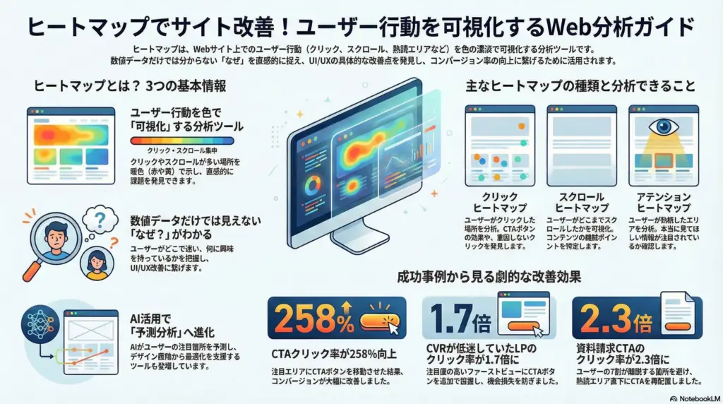 【2026年最新】ヒートマップ分析の教科書|種類・手順・CVR改善事例